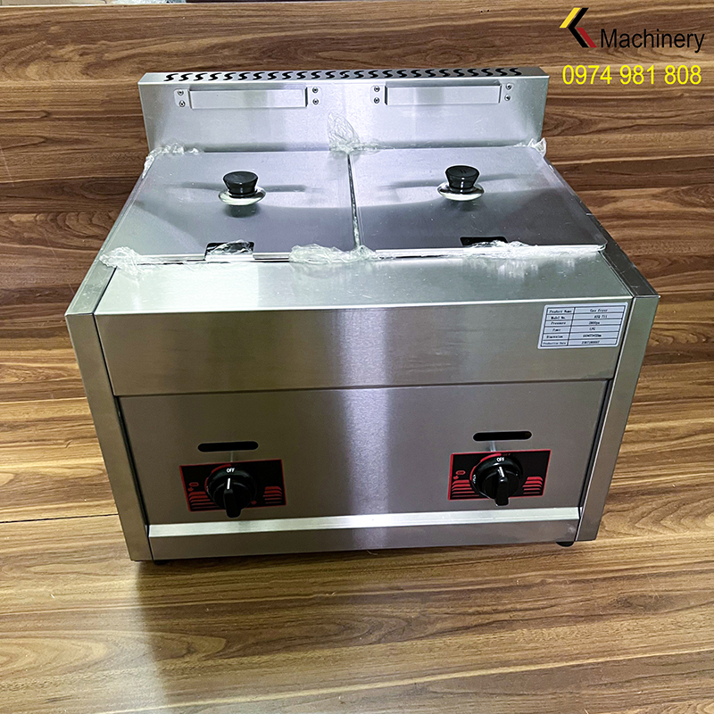 - Vật liệu: nồi chiên, giỏ chiên bằng inox 304, thân bếp inox 201