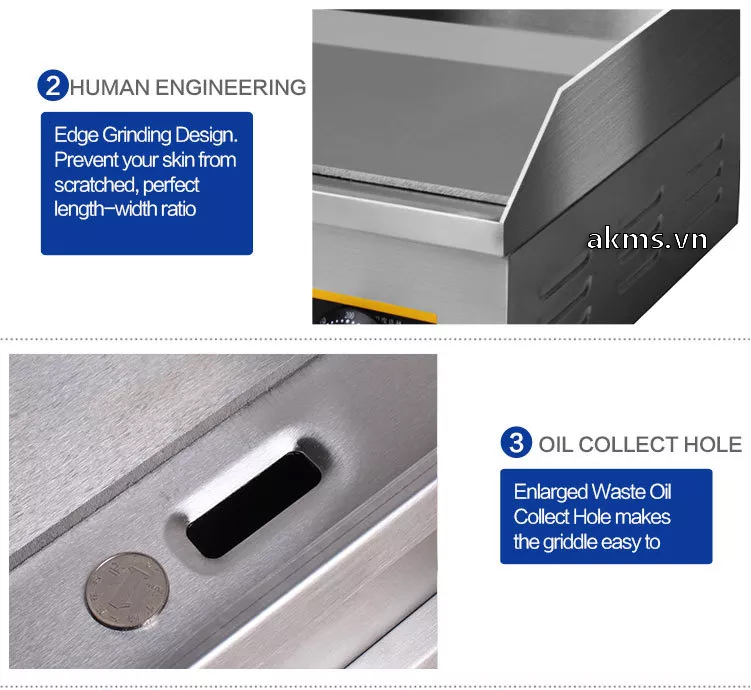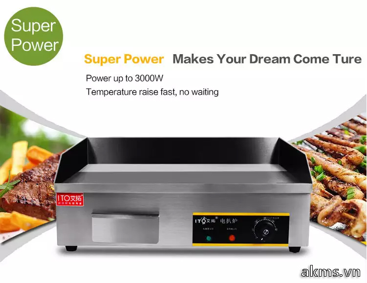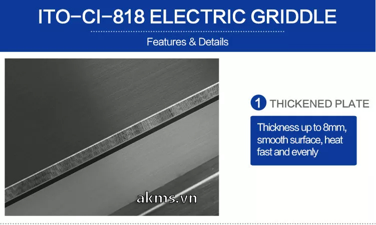 - Bộ cấp và điều khiển nhiệt cao cấp được nhập khẩu, điều chỉnh chính xác nhiệt độ từ 0 - 300°C, giúp mâm chiên nóng nhanh và sâu, thành bếp dày và chắc chắn, tránh dầu mỡ bắn ra xung quanh khi chế biến