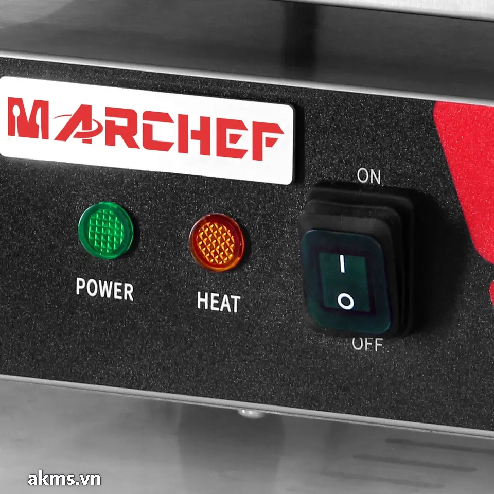- Máy được trang bị cụm điều khiển nhiệt độ bằng núm xoay, điều chỉnh nhiệt độ một cách chính xác từ 0 - 300°C. Máy cũng được tích hợp cụm hẹn giờ, cài đặt sẵn các mốc thời gian từ 0 – 5 phút, giúp người sử dụng tiết kiệm thời gian, không phải canh máy liên tục.