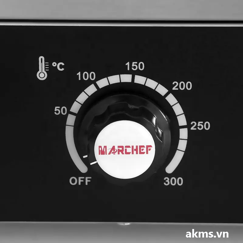 - Nhiệt độ khuôn từ 0 - 300°C được điều chỉnh bằng núm xoay trước mặt máy. Thời gian nướng bánh linh hoạt từ 0 – 5 phút, người sử dụng có thể lựa chọn thời gian nướng bánh tùy theo nhiệt độ nướng mà không phải đứng canh tại chỗ