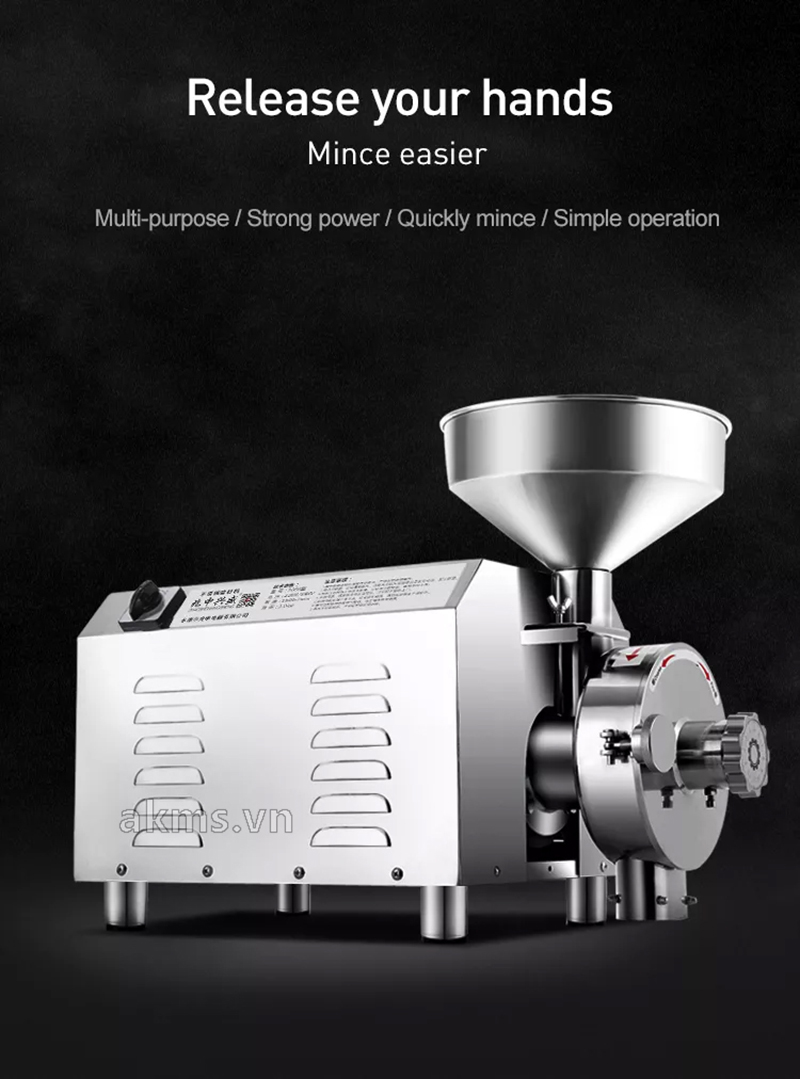 - Máy được trang bị động cơ đồng nguyên chất, công suất 3600W, tốc độ quay 1500 vòng/phút, đĩa nghiền hợp kim cứng kết hợp 3 cánh khuấy bằng thép không gỉ cho năng suất xay nghiền cao từ 20-30kg/giờ. Máy được tặng kèm 04 đĩa nghiền nguyên bản, giúp việc thay thế được thuận tiện dễ dàng