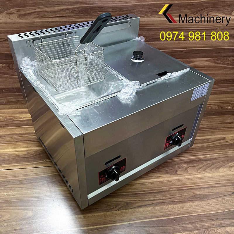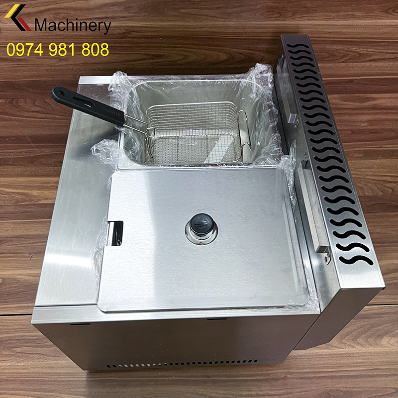 - Vật liệu: nồi chiên, giỏ chiên bằng inox 304, thân bếp inox 201