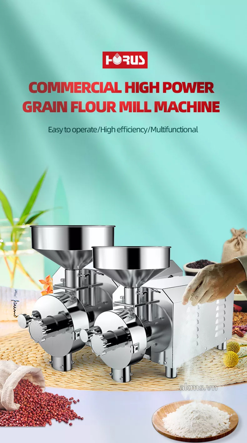 - Máy được thiết kế để nghiền các loại bột ngũ cốc như đậu, ngô, gạo, các loại hạt khác như café, hạnh nhân, các loại bột dược liệu như tam thất, tinh bột nghệ v.v.. và các loại dược liệu, nguyên liệu thực phẩm. Máy được thiết kế để nghiền hạt khô, không dùng cho hạt ướt hoặc nhiều dầu. Với hạt có nhiều dầu, nên trộn thêm các nguyên liệu khác để nghiền sao cho tỉ lệ dầu đạt <10% khối lượng.