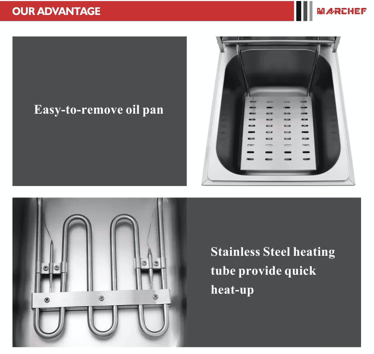 Bếp được thiết kế để thực hiện nhiều món chiên khác nhau như: gà rán, khoai tây chiên, hải sản, phô mai chiên v.v.. phù hợp với nhu cầu của gia đình, bếp ăn, cửa hàng đồ ăn nhanh