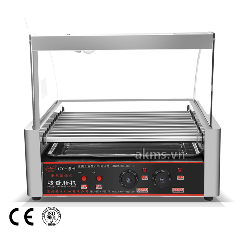 - Thực phẩm được nướng trên các thanh gia nhiệt (con lăn dạng ống) xoay 360° được làm nóng nhanh, tỏa nhiệt đều, chống dính và được sản xuất từ vật liệu inox 304 đảm bảo vệ sinh an toàn thực phẩm. Đầu thanh được gắn gioăng chịu nhiệt, ngăn không cho dầu mỡ rơi vào thân máy.